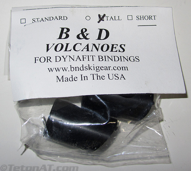 Not only do they make heal height adjustment easier for righties, but the setup is lighter as well. The B and D Comfort Plates with the “tall” cones weight nearly 20 grams lighter than the stock TLT plates with one button, and even more if you use two buttons. (Dynafit TLT Speed binding used to come with two buttons, but now they only come with one.) The height of the tall cones is also a benefit for those that like steep ski tracks and are 1/4” taller than the stock Comfort volcanoes and lie somewhere between the one and two button configurations on the TLT Speed.