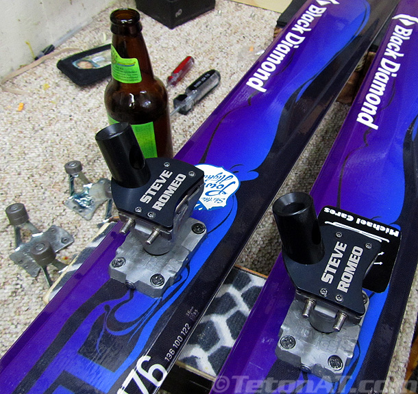 Not only can you get these top plates in a variety of colors, B and D Ski Gear had silver, black and red in stock when I ordered mine, they can also engrave whatever you want on them with the font of your choice. I opted for my name on mine, in the Serpentine font, but now that I think about it, “Live to Ski” may have been a good choice on a couple of them as well.