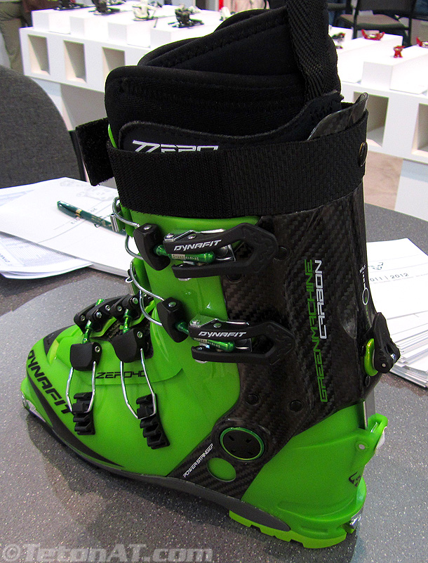 I was anxious to see the updated Zzero4 Green Machine ($1000), which now has a full carbon spoiler on the cuff, as opposed to only lateral stringers of the past version…which is still available. The new construction and design of the cuff also adds about 10 degrees of cuff travel in the rear-ward part of the stride, which is something I like, since a lot of the tours here in the Tetons have flat approaches. While not earth shattering, the new Green Machine is 50 grams lighter (1585gr) than the past version and I think it looks cooler too. I can’t wait to see how they ski.