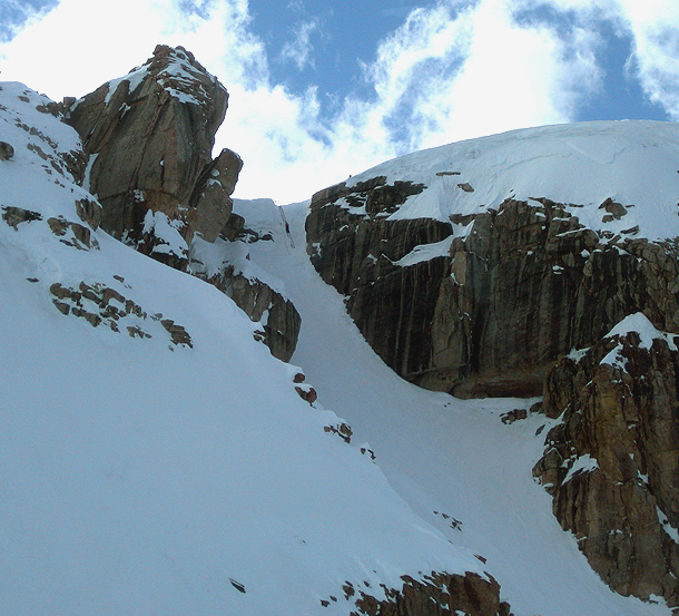 I have been trying to screw up my courage to make the thirty foot drop in since I first saw Corbet’s five years ago. Strangely today my heart was not racing and my mind was quite calm. Unlike the last five day of crazy vivid dreams of making that drop into the couloir and skiing away. I lost a lot of sleep in those days.