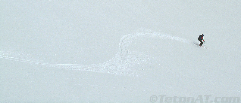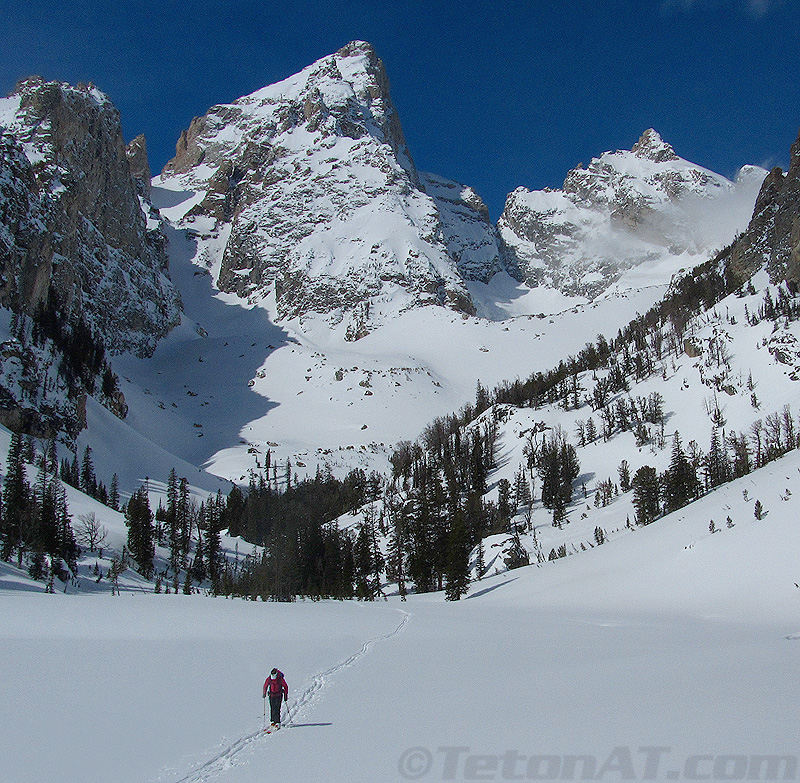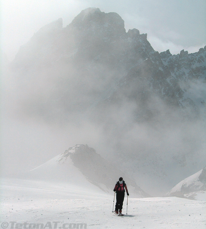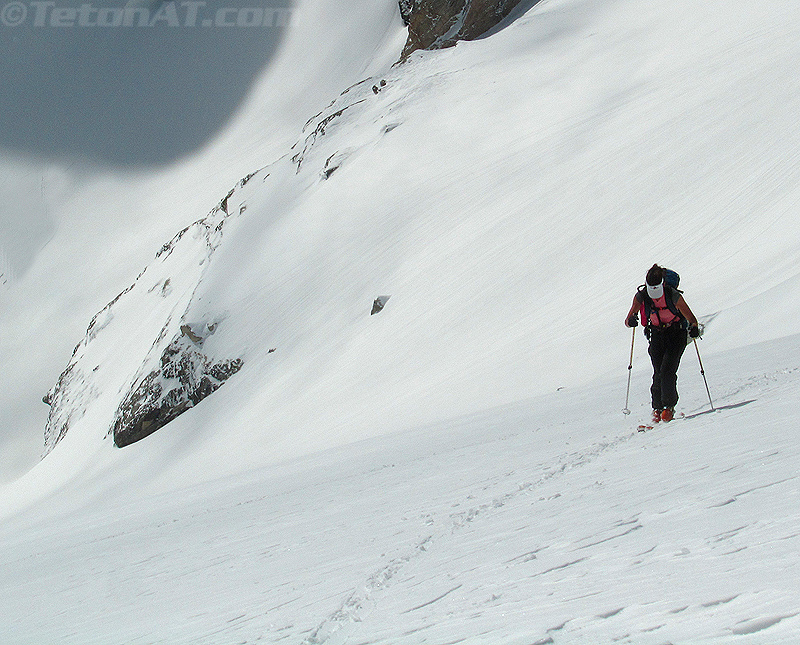 Well, conditions are pretty prime for ski touring in the Tetons right now. There is some funky snow here and there, but if you time things right, the skiing is great! I got shut down a mission for the steep and deep yesterday (due to some lingering weather on the high peaks), but had a fun Garnet Canyon to Glacier Gulch tour with RandoKitty on Saturday.