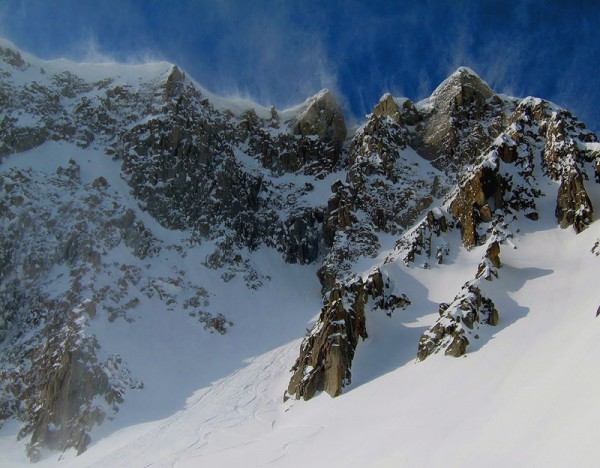 If I were to choose one word to characterize the Hulk Hogum, it would be “steep.” All of the lines in the Hulk Hogum, at their best, are between 45 and 55 degrees. We were lucky to get a couple of the lines in soft conditions (Cham Chute, Dresden and Coalpit). Some of the others presented a clinic on skiing icy to breakable conditions on lightweight ski gear. Although I know there were times when I didn’t look (or feel) all that calm and fluid, I don’t think I ever took a fall, and in my book, that’s a success.