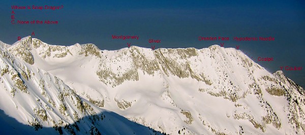 Dresden Face, Hypodermic Needle, Coalpit Headwall and Y Couloir.