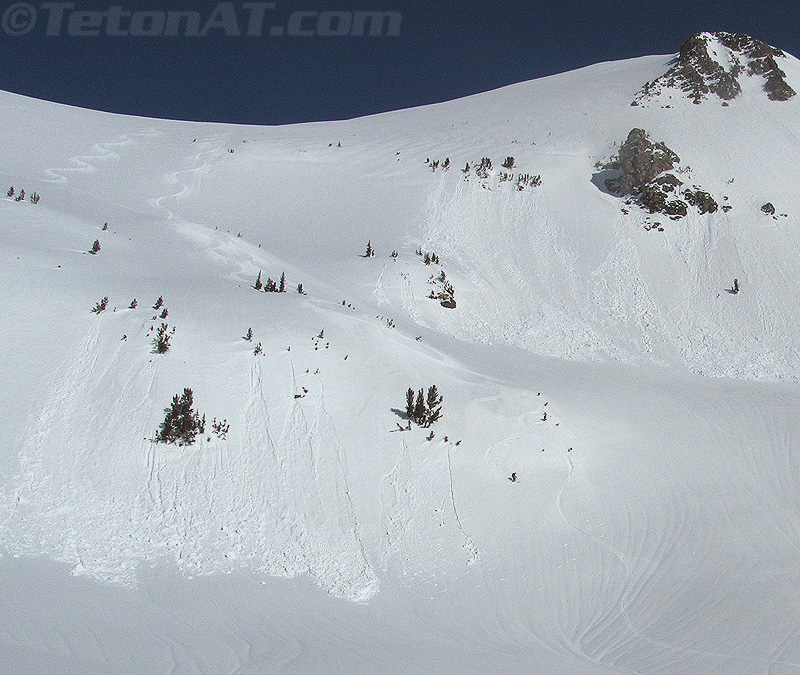From what I’ve experienced in the past few days, if you want good conditions you want to be skiing by 8am for most easterly aspects. You can get away with skiing more southerly aspects a bit later, but be aware that depending on the terrain and aspect at lower elevations, you may be dealing with some serious wet slides. We kicked off two today in Static Draw that showed signs of building into bigger avalanche events if the terrain allowed. Here are some more pictures from today…have a great weekend!