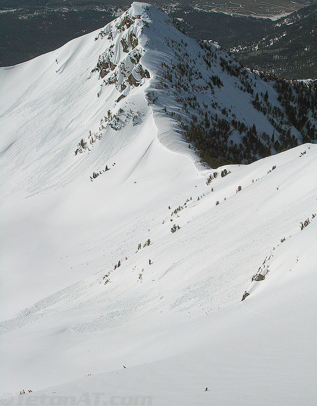 There is a line in this photo that I have been eying for the past few years, but it appears to be runnelled now. With the wildlife closure in effect for most of the winter on Prospectors, it’s often hard to get the timing right for some of the gnarlier descents on the peak. Oh well…maybe next year.