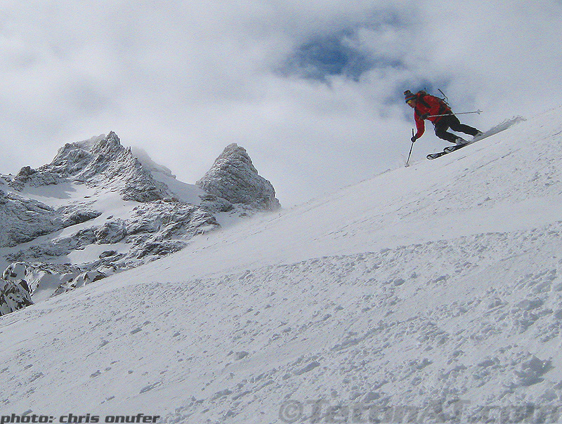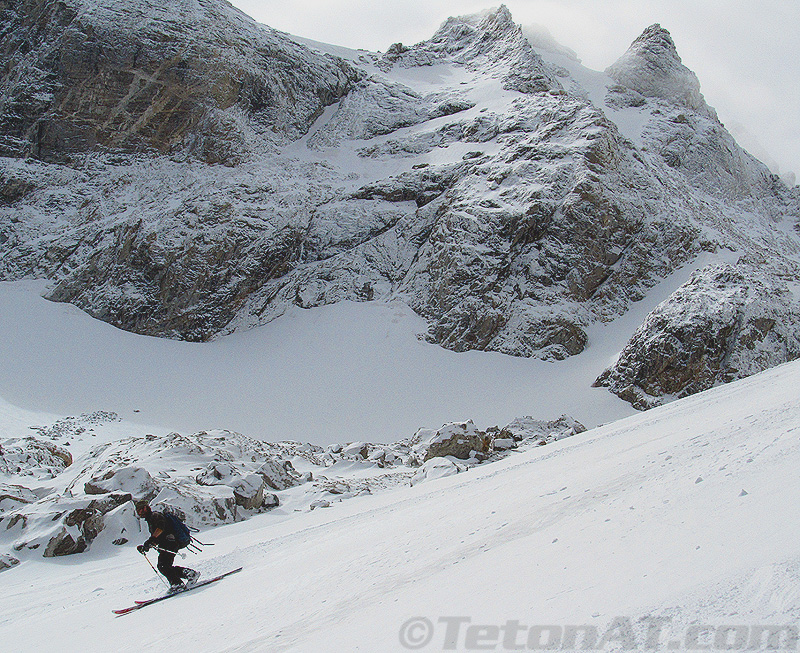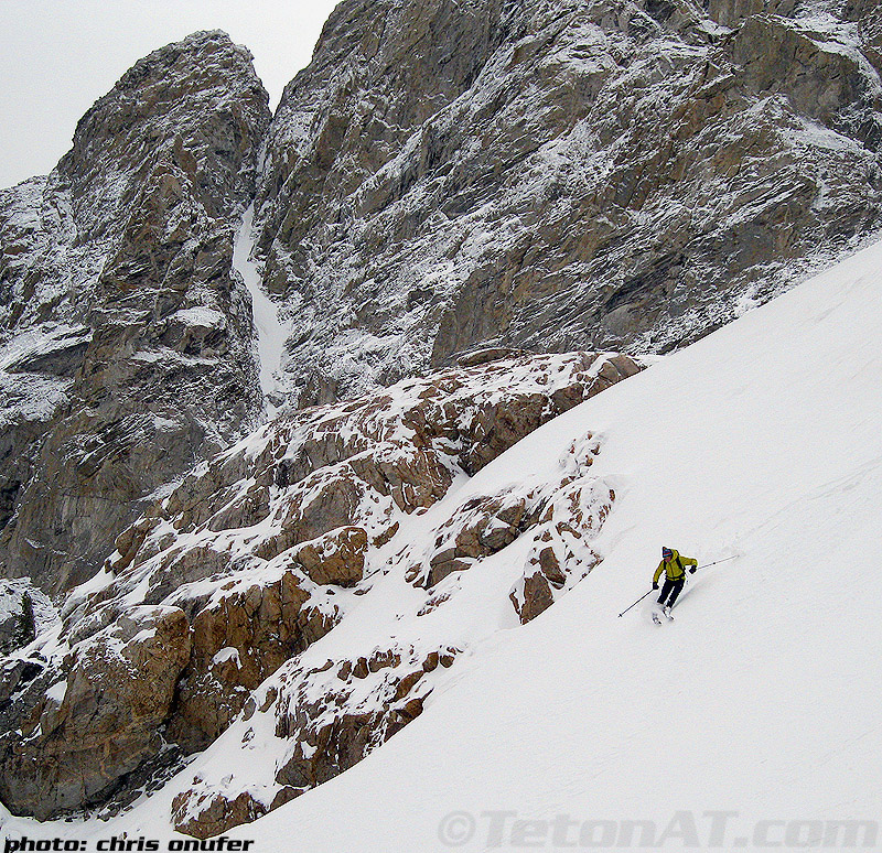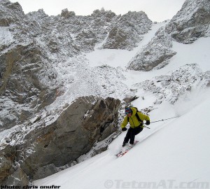 Randosteve skis the Cave Couloir in Garnet Canyon.