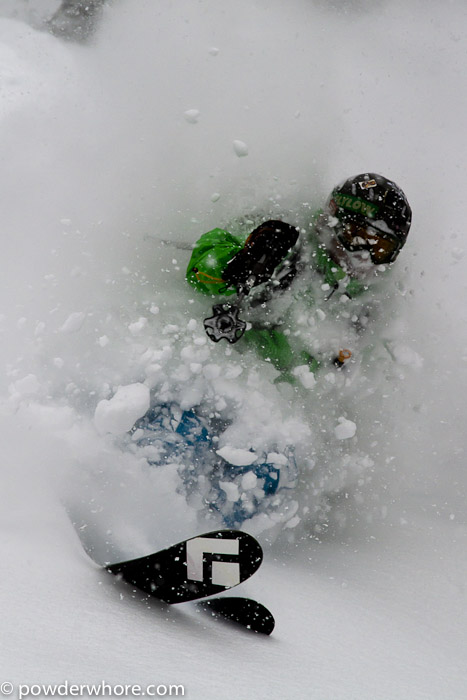 More epic pow shots, nasty tumbles and small avalanches keep you pumped-up as Jason West skis in the following segment. Jason is an alpine skier, which for the Powderwhores to include in their movie is a step away from the norm and adds some nice flavor to their historically tele-proud videos. The backcountry slayage continues with some Colorado powder (yes, surprisingly there is powder skiing in Colorado) and Will Cardamone showing us how the pro-freeheelers do things. Hippy, fairy-tale-like music keeps your head bobbing through more hip dragging slash-turns and is classic Powderwhore if you’ve been following their films over the years.