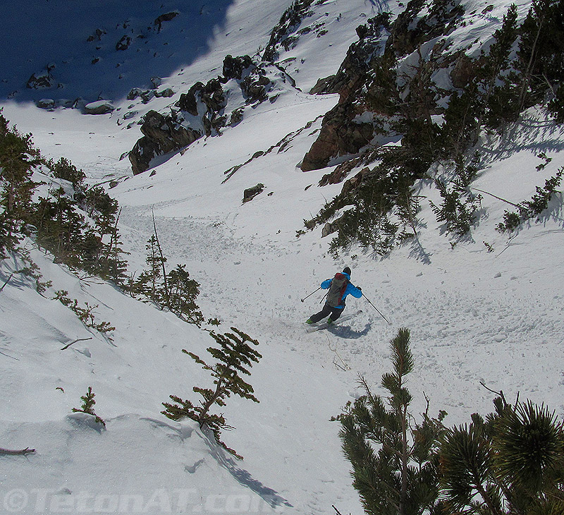 Glen skiing the lower section of Pube Chute.