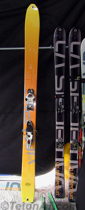I was a fan of the La Sportiva High 5 ski last year and their new Hang 5 ski with a waist of 117mm, pin-tail and early rise tip, follows suite as being a very stable, easy turning and fun ski. Even though the snow was pretty icy at the demo, the fat waist of the Hang 5 held an edge well and carved nicely. In fact, I enjoyed skiing the Hang 5 more than another new ski from La Sportiva, the Low 5, which was narrower, but felt sort of dead.