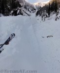 It’s good to be reminded of the power of this path that we’ve probably all skied underneath so many times complacently (I know I have). I don’t think this individual should be vilified for his actions. I don’t believe he acted inappropriately. That’s the nature of skiing in a backcountry venue like the Pass. It’s the skier’s responsibility to be aware of when they’re skiing in runouts and paths. Seems like a lot of people forget this (Tony- in this way, Saddle Peak is an apt analogy).
