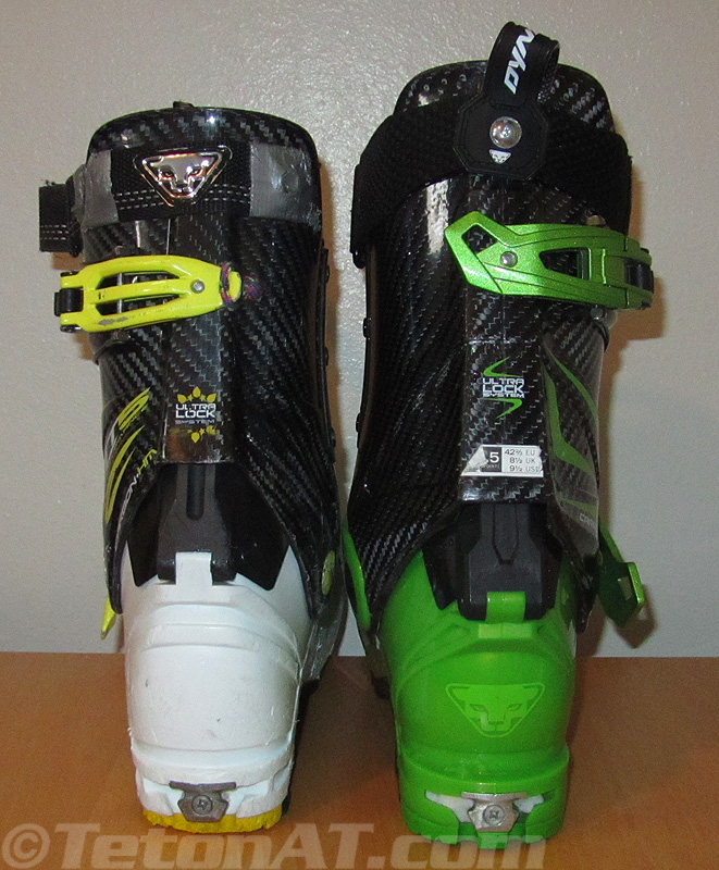 Anyway, I figured I’d shoot a few side-by-side photos of the Vulcan and the TLT5’s (both shells are size 27/27.5), since folks are familiar with the TLT5 and can see the similarities and differences between the boots. I’m thinking a boot quiver of Vulcans and TLT5s would be pretty sweet next year, but it will cost you. If you are looking for a quiver of one boot, next year’s Dynafit One boot may be the better blend of lightweight and stiffness…while also saving you a few ounces as well.