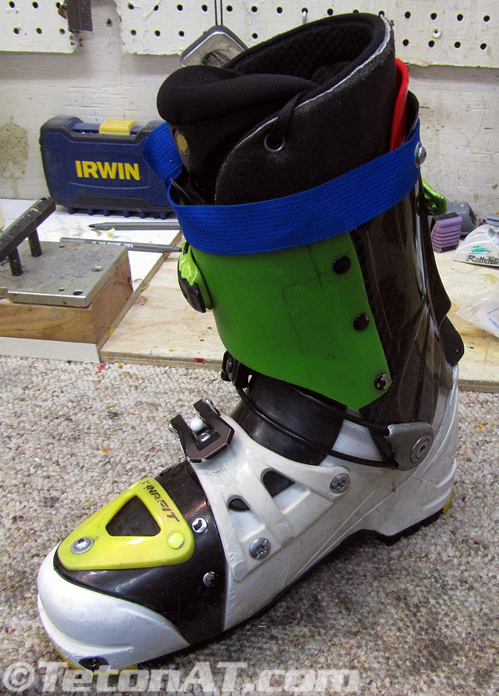 Like the mods. Don’t really know if you need that lower forefoot with that instep though. Do you get any more performance or retention out of that? I think if you put a real booster strap on with some elastic stretch it would add some forward progression instead of a brick wall. Ankles are the key to good skiing. 🙂 just my two cents