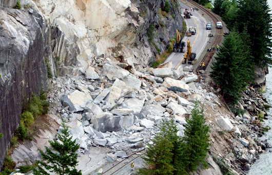 Rockslide on the Sea to Sky Highway connecting Vancouver to Whistler/Blackcomb, where they have been doing massive improvements for the upcoming winter Olympics in 2010 Click here for more on the rockslide.