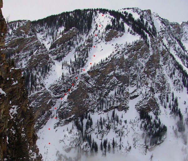 While skiing this steep line in the northern range yesterday, a 12-18″ slab released to my right on the fourth turn. Luckily, it didn’t pull-out above me and I was able to ski away unscathed. You can see the crown lower on the ridge on the right, and if you look close enough, the powder […]