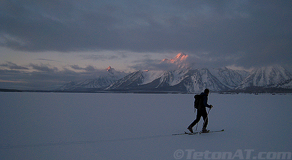 Skinning across Jackson Lake yesterday