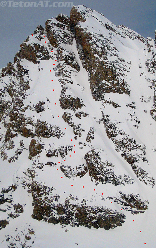 The Glacier Route on the Middle Teton…as skied on June 19,2008. The last time I skied this route was in March of 2004. Picture taken from Disappointment Peak on December 24, 2005. Enjoy the video!
